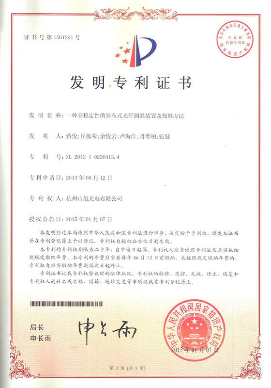 發(fā)明專利證書——一種高穩(wěn)定性的分布式光測溫裝置及校準方法