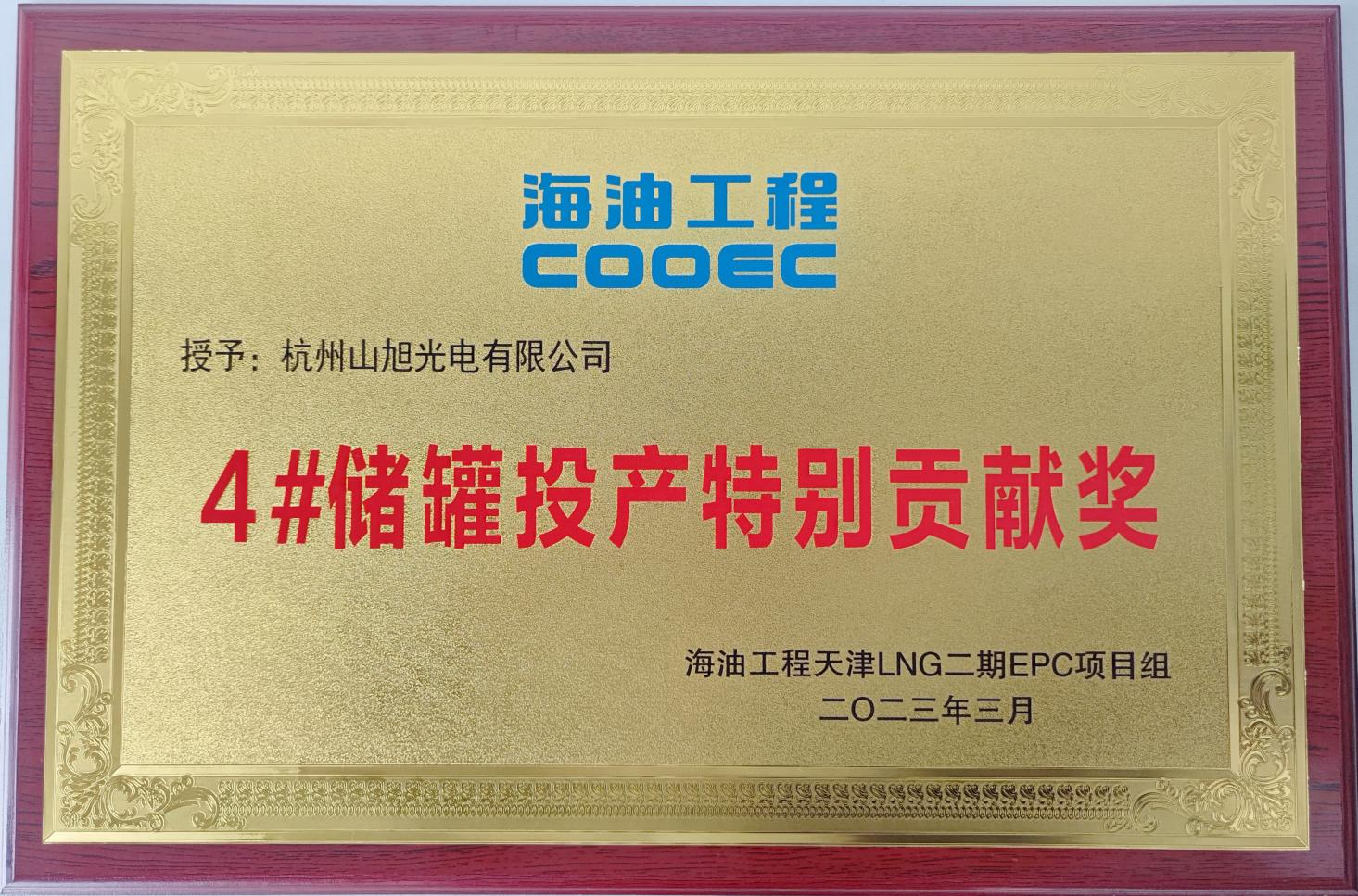 山旭光電有限公司獲得海油工程4#儲罐投產(chǎn)特別貢獻獎
