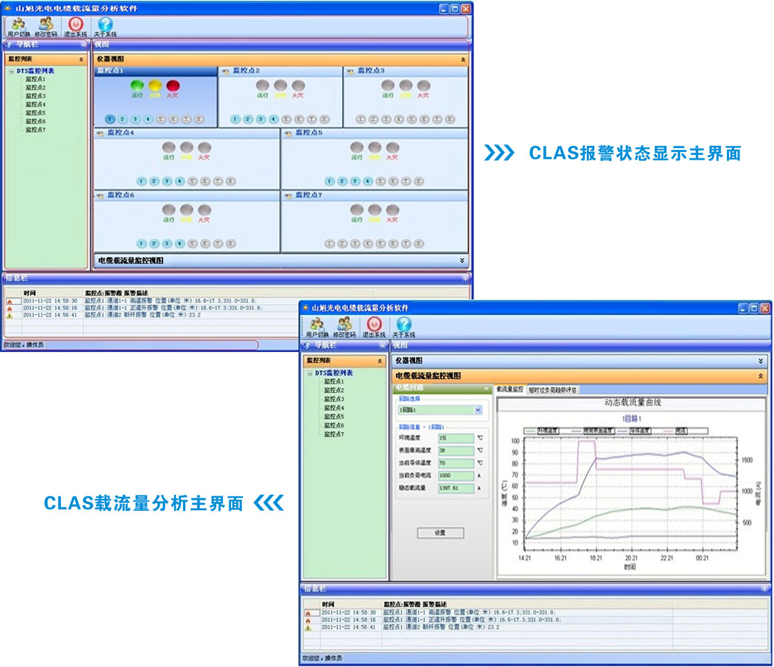 山旭光電電纜載流量分析軟件(簡(jiǎn)稱CLAS軟件),它基于先進(jìn)的DTS分布式光纖測(cè)溫技術(shù),可以實(shí)時(shí)、全范圍監(jiān)測(cè)電纜表面溫度,采用國(guó)際電工委員會(huì)標(biāo)準(zhǔn)IEC60287、IEC60853算法模型實(shí)時(shí)計(jì)算導(dǎo)體溫度和動(dòng)態(tài)載流量,為電纜的安全監(jiān)控和負(fù)荷管理提供了有效幫助。CLAS軟件具有良好的擴(kuò)展性,可與其他開放性現(xiàn)場(chǎng)設(shè)備進(jìn)行無縫連接,實(shí)現(xiàn)實(shí)時(shí)數(shù)據(jù)顯示以及報(bào)警顯示等功能。