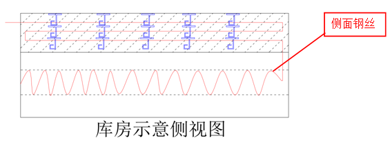 側(cè)面墻壁感溫探測(cè)光纜和鋼絲繩固定示意圖