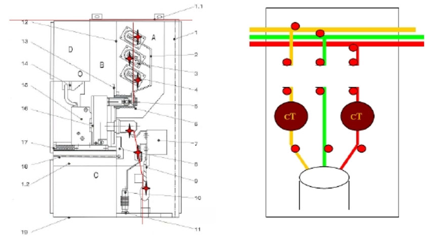 上圖中, 表示開關(guān)柜中可測(cè)試的點(diǎn),