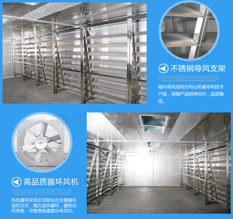 烤房?jī)?nèi)部框架全部采用SUS304材料;